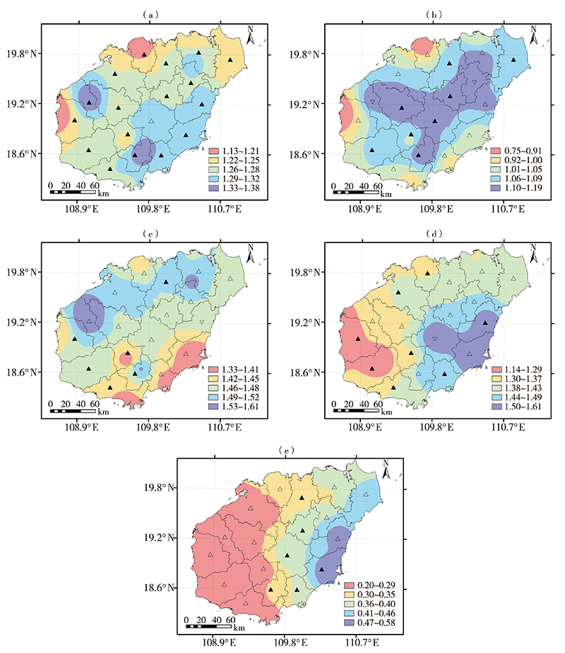 利用海南岛18个气象站1969—2018年逐日降水观测数据,采用信息熵法、Mann-Kendall趋势检验和反距离权重空间插值方法,分析海南岛降水随机性的时空变化特征。结果表明:海南岛年降水量和降水日数月分配的不均匀性由东向西逐渐增大。近50 a来,北部、西部及南部部分地区年降水量和降水日数月分配的不均性增强,其余地区总体减弱。海南岛年和四季日降水量随机性空间分布各异,且与暴雨及以上等级降水日数占比均呈显著正相关。时间变化上,海南岛绝大部分市(县)年和四季日降水量随机性增大,尤其表现在四季强降水发生概率增加。春、夏、秋、冬季需依次重点防范中部、西北部、东部和东部地区的暴雨至特大暴雨。