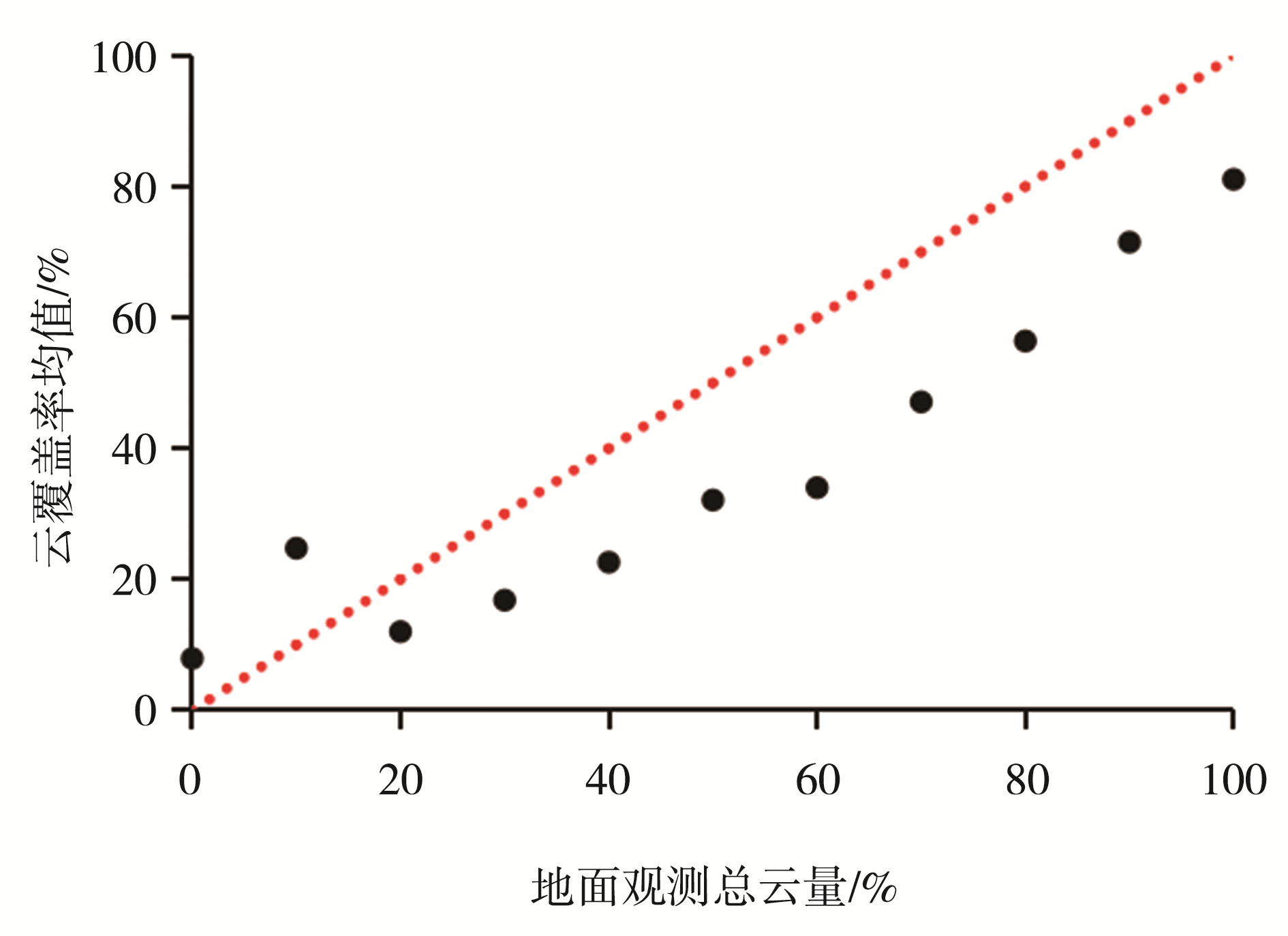 开展卫星反演云量的准确率评估是业务应用的基础,对于有效发挥卫星遥感高时空分辨率的优势以及弥补地面观测资料的不足具有重要意义。以处于典型干旱半干旱区域的宁夏为研究区,利用2019年08:00、11:00、14:00、17:00、20:00(北京时,下同)5个时次的地面观测总云量资料对风云四号A星(简称“FY-4A”)云覆盖率产品进行检验和评估,并利用归一化混合订正法对逐月云覆盖率产品进行订正,在此基础上分析宁夏日间云覆盖率的时空分布特征。结果表明:1)宁夏区域FY-4A云覆盖率产品与地面人工观测总云量的逐月、逐日变化趋势具有较高的一致性,全区平均及各气象站FY-4A云覆盖率与人工观测总云量的相关系数普遍为0.7~0.9,但总体上低于总云量值。2)从5个时次总云量和云覆盖率一致率来看,11:00、14:00、17:00的一致率高于08:00和20:00;从云量分级检验来看,一致率依次为晴天>阴天>少云>多云。3)归一化混合订正方法能有效降低FY-4A云覆盖率产品与地面人工观测总云量的偏差,订正后各月的平均值与气象站云量基本吻合。4)宁夏年平均日间云覆盖率为30%~70%,贺兰山沿山、引黄灌区(中卫市沙坡头区—银川一带)、中卫市海原县及固原市云覆盖率较高,石嘴山市惠农区、大武口区东部、平罗县东部云覆盖率最低;5—6月全区云覆盖率普遍较高,12月云覆盖率最低。