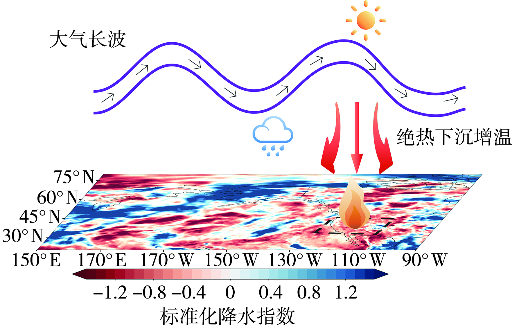 2024年7月加州北部爆发的特大山火在极端高温与强风的共同作用下迅速蔓延,造成严重损失。本文利用美国干旱监测的干旱程度和面积指数(Drought Severity and Coverage Index,DSCI)、欧洲中期天气预报中心(European Centre for Medium-Range Weather Forecasts, ECMWF)发布的ERA5(ECMWF Reanalysis v5)再分析资料和美国国家海洋和大气管理局(National Oceanic and Atmospheric Administration,NOAA)提供的海温等多源数据,分析山火爆发前后的气象条件与环流背景,可为极端气候背景下山火预警与防控提供科学依据。结果表明:2024年7月加州山火爆发是极端气象条件导致的结果,持续数周的高温(日最高气温达32.1 ℃)、极低湿度(平均相对湿度<50%)和持续干旱(DSCI>26.0)使植被高度易燃。环流系统极端异常加剧了高温干旱,北美西海岸持续受高压环流控制,局地强风加速了山火的空间传播。2024年厄尔尼诺事件(Niño 3.4区正异常)通过遥相关作用增强高压系统,抑制冬季降水并延长干旱期,热带东太平洋暖海温使得哈德莱环流增强,加强了加利福尼亚州的下沉气流,最终形成“高温-低湿-干旱”的耦合模式,显著增加山火面积和持续时间。