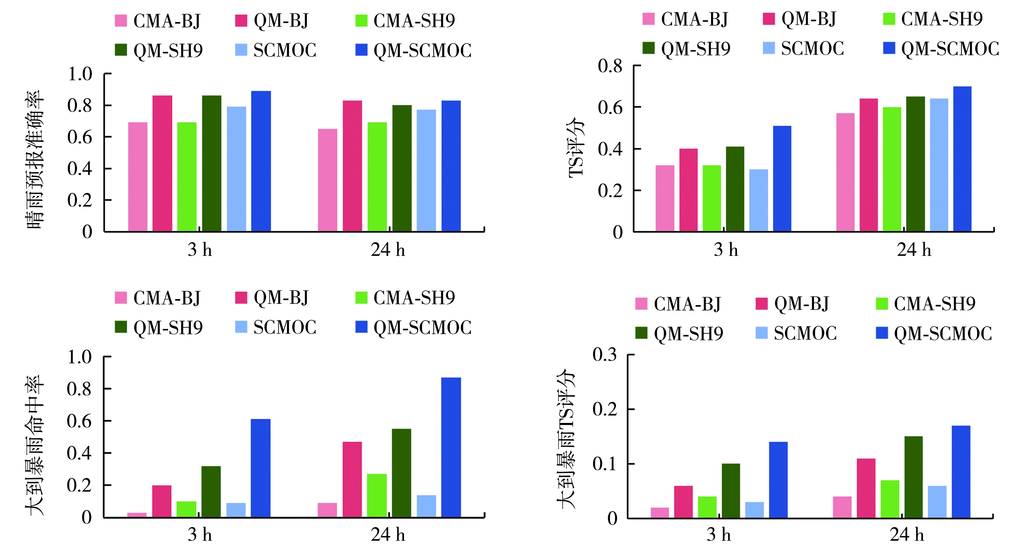为提升青海省未来24 h大到暴雨预报准确率,尤其是对突发性暴雨事件的捕捉能力,本文利用青海省2023年7—9月降水观测和多个模式预报资料进行检验优选,再对优选模式预报产品进行分位数映射订正,将多模式动态融合与分级强度订正方法相结合,应用于青藏高原地区的大到暴雨客观预报。结果表明:中国气象局(China Meteorological Administration,CMA)华东区域数值预报系统(CMA-SH9)、中国气象局北京快速更新循环数值预报系统(CMA-BJ)及中央台指导预报产品(SCMOC)在青海省大到暴雨预报中效果相对较优,因此最终考虑选取这3种模式作为优选模式进行融合;对3类优选模式分位数映射订正再动态融合后,各量级晴雨预报准确率和TS(Threat Score)评分等检验指标均有不同程度提升,但强度偏大,存在系统性正偏差;3类优选模式动态融合分级订正明显改善了预报偏差,较单模式预报晴雨预报准确率提升7.8%~27.7%,TS评分提升9.3%~22.8%;区域性大到暴雨个例分析表明:动态融合分级订正预报偏差更接近1,降水预报的雨带位置特别是大到暴雨落区也更接近降水实况;其晴雨预报准确率、大到暴雨TS评分、大到暴雨命中率分别较最优单模式提升2.2%、19.4%、27.4%。