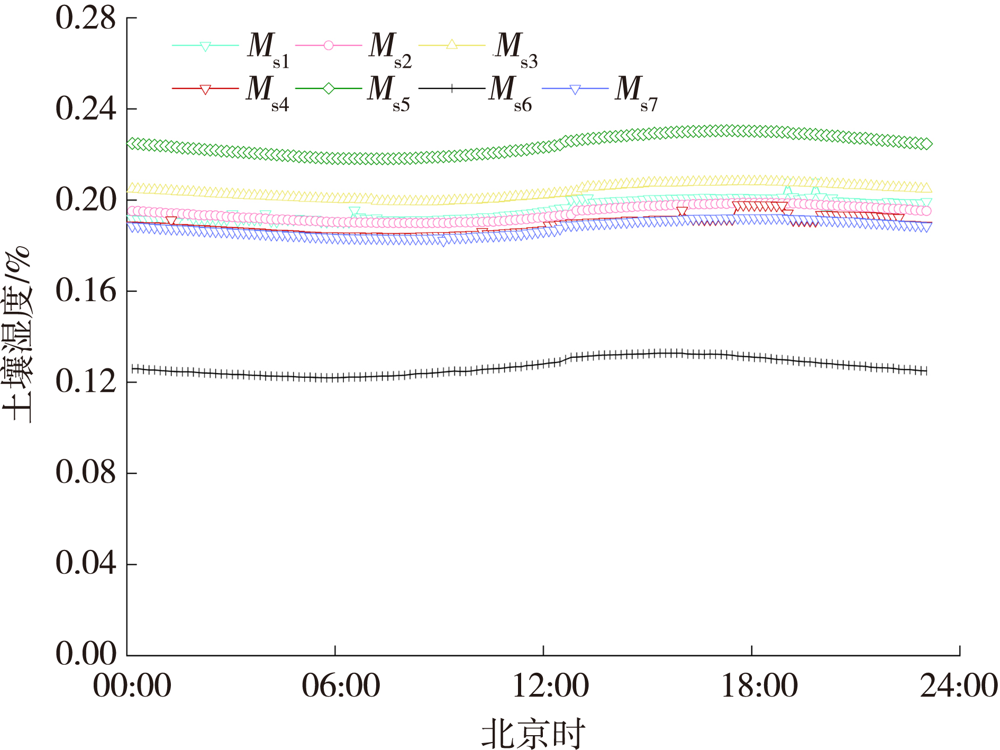 | Fig.3 The mean diurnal variation of soil moisture observed by 7 sets of CS616 soil moisture sensor |