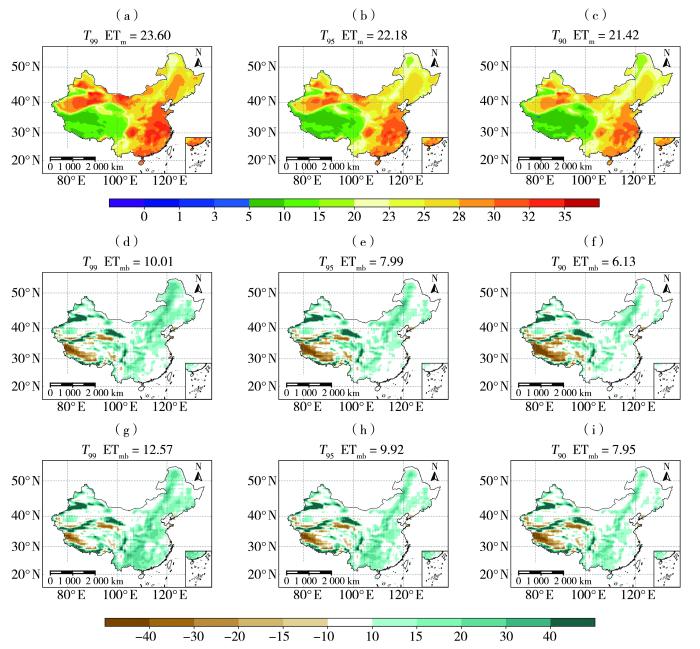 (ETm和ETmb分别表示中国区域平均日极端气温与相对误差)