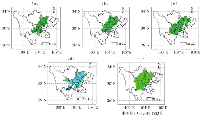 | ECMWF | 1 015个格点 | 485.27 mm | 离心率0.88 轴角-46.53° | 104.09°E、30.93°N | 0.75 | 1.00 | 1.00 | 0.84 |
