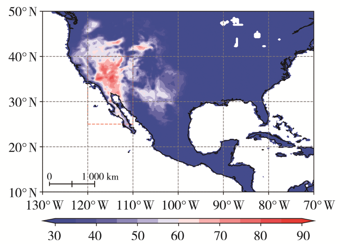 在全球变暖背景下,干旱状况加剧,区域性高温干旱事件频发(Trenberth et al.,2015;林纾等,2022;李春华等,2024;颜鹏程等,2024;张强等,2025),全球易燃区域增加了29%,导致北半球暖季山林火灾事件频发,过火面积扩张(Senande-Rivera et al., 2022; Luo et al., 2024; Luo et al., 2025)。作为地球系统变化不可或缺的一部分,山林火灾不仅对社会经济、能源部门、人类健康、生态系统和生物多样性构成了严重威胁,而且还会通过释放温室气体和气溶胶以及改变区域下垫面类型和植被条件,从而对气候系统变化产生影响(Mack et al., 2011;Turetsky et al., 2015;Bowring et al., 2022)。例如,中高纬度地区的夏季山林火灾事件已成为全球火灾CO2排放的主要组成部分(Zheng et al., 2023)。已有研究表明,暖季山林火灾的发生受天气和气候因素复杂相互作用的驱动。在具备可燃植被的前提下,引发火灾的主要气象条件与风险因子包括地表温度升高、水汽压亏损增加、大气对流不稳定增强、闪电活动频发以及大风天气等(Sedano and Randerson, 2014; Pinto et al., 2020; Jain et al., 2022)。美国加利福尼亚州(简称“加州”)夏季常受副热带高压环流系统控制,主导下沉气流,炎热干燥,为山林火灾的发生提供了有利的气候背景(田永丽和王秋华,2019)。近年来,受气温变暖、降水减少及极端天气气候事件的影响,加州山林火灾频发,且蔓延速度快、过火面积大、破坏性强(田永丽和王秋华,2019;刘洋鹏等,2025),其中,2024年夏季,发生在当地时间6月15日的洛杉矶山林火灾(简称“6·15火灾”)过火面积达80 km2以上,一度导致公路关闭。此外,受高温天气影响,7月24日加州山林火灾,过火面积达1 616 km2(简称“7·24火灾”)。