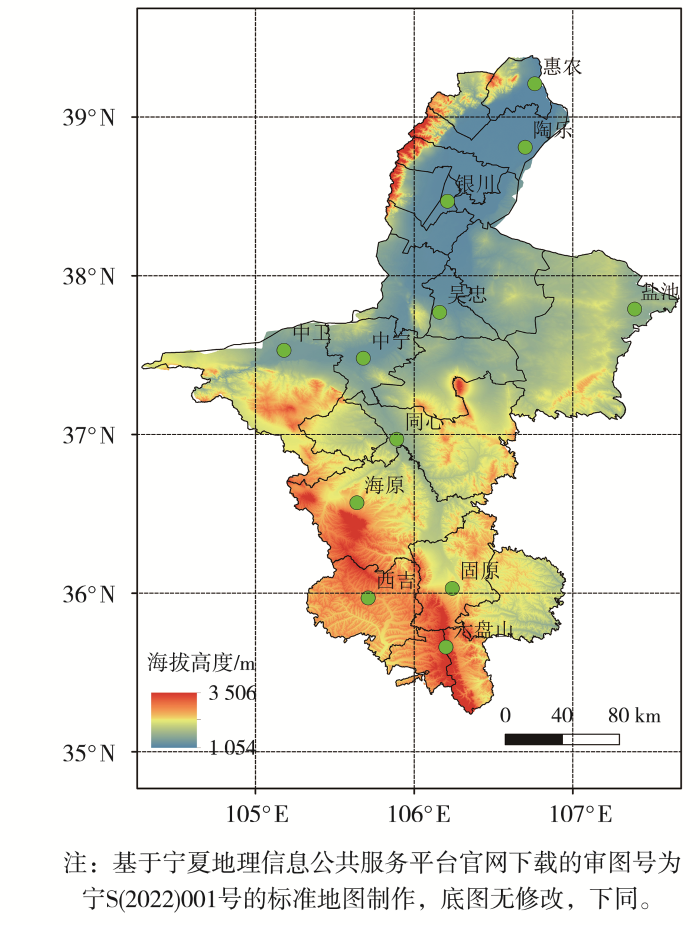 宁夏地处内陆,位于我国西北地区东部,处在黄土高原、蒙古高原与青藏高原的交汇地带,大陆性气候特点显著。宁夏下辖5个地市,分别为石嘴山市、银川市、吴忠市、中卫市和固原市。从我国的气候区划来看,固原市南部属于中温带半湿润区域,原州区以北到盐池、同心一带归为中温带半干旱区,而引黄灌区则被划定为中温带干旱区。宁夏基本气候特征为干旱少雨、风大沙多、日照充裕、蒸发强烈,冬寒长、春暖快、夏热短、秋凉早,气温的年较差、日较差大,处于南部的六盘山区拥有特殊的地理环境以及丰富的云水资源(李峰,2023)。