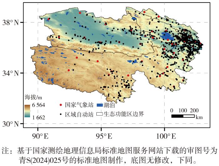 选取青海省55个国家气象站、753个区域自动站(图1)2021—2023年地表温度数据,用于构建地表温度机器学习模型;选取青海省东部农业区2023年7月上旬至8月中旬以及玉树藏族自治州通天河流域2023年8月降水量数据,用于评估地表温度集成学习模型的反演性能。以上数据来源于气象大数据云平台。