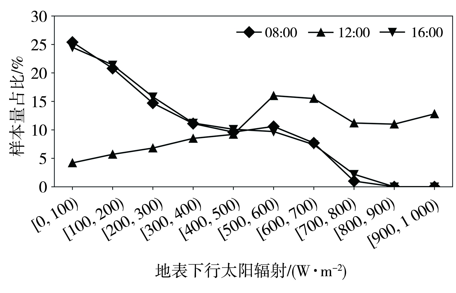 | 图4 不同时刻、不同辐射区间的样本量占比 |
