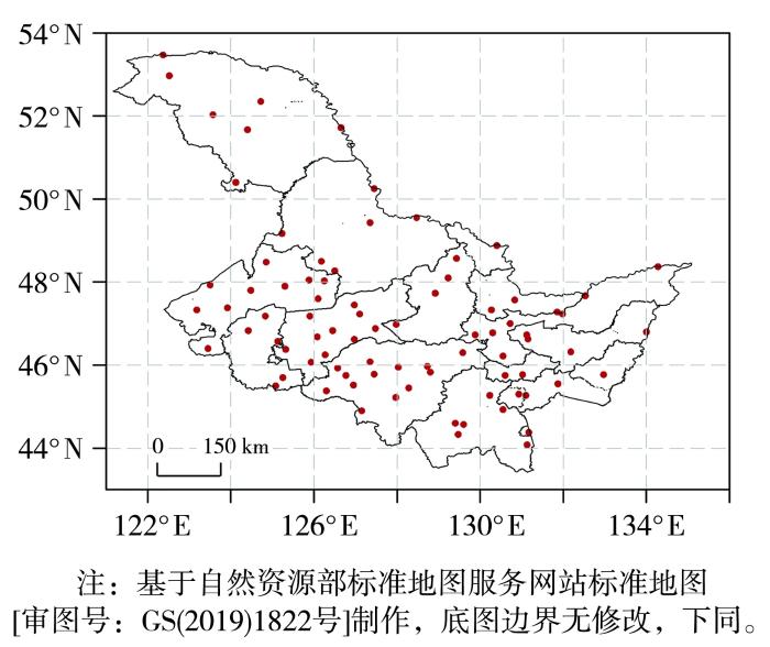 Spatial distribution of 83 conventional meteorological stations in Heilongjiang Province