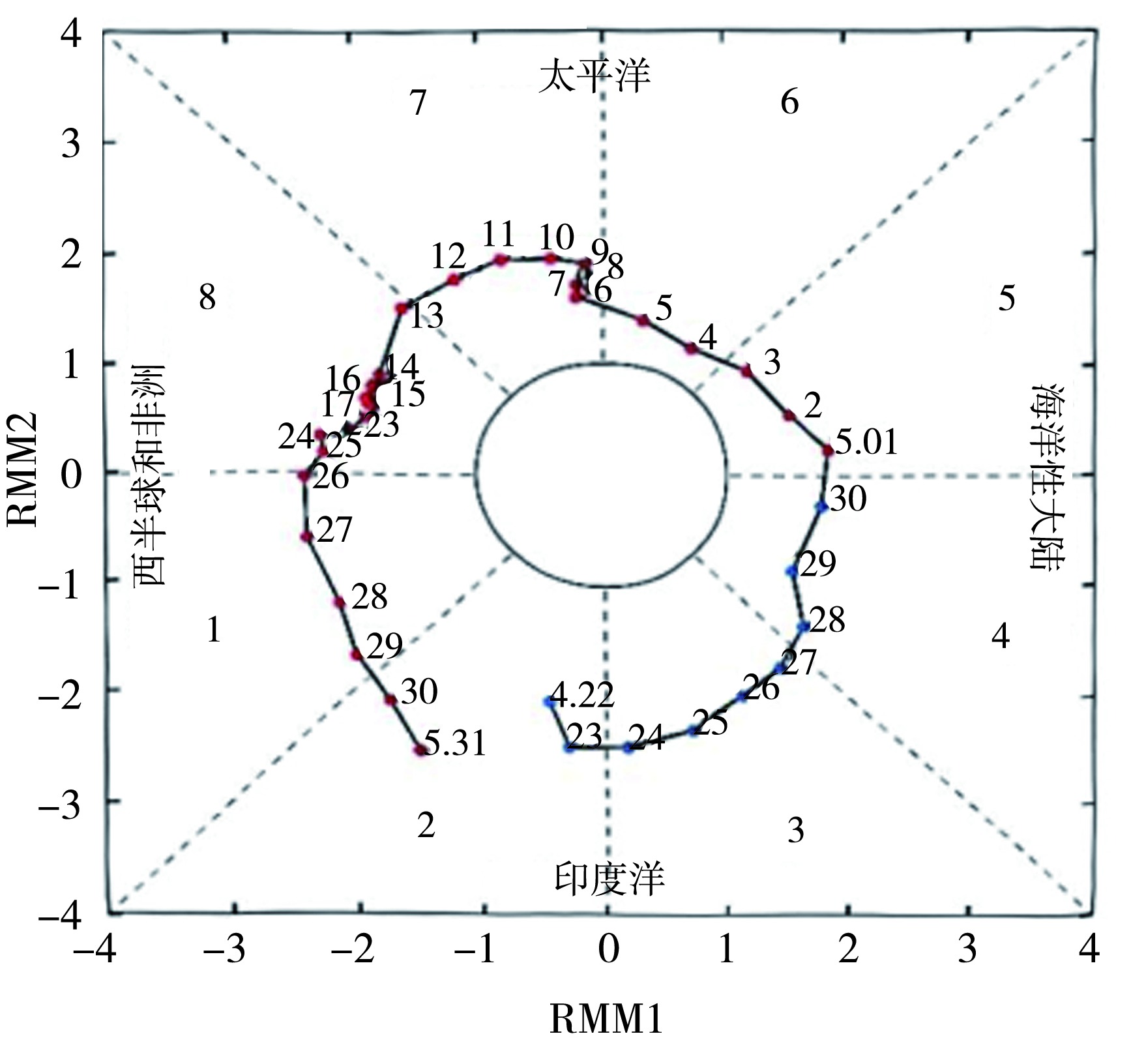 | 图4 2019年4月22日-5月31日MJO位相图 |