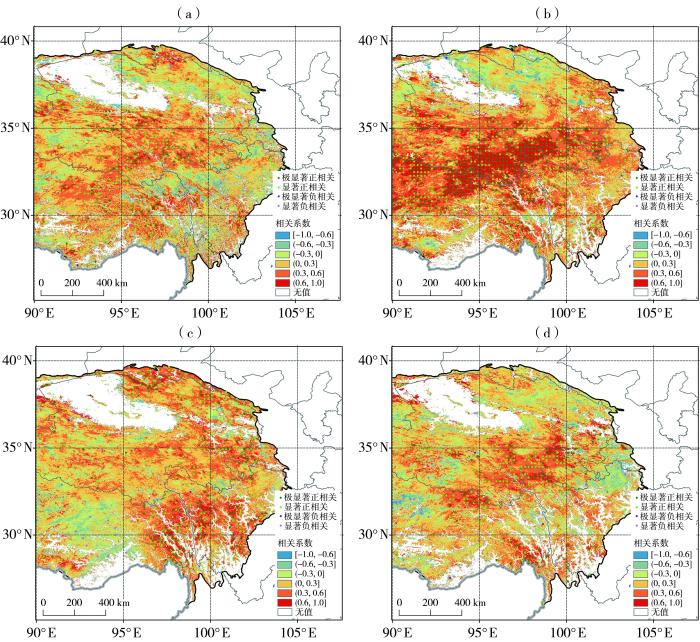 4)积雪覆盖频率与气温总体呈负相关,冬、春季相关范围广且显著,秋季仅在内陆及东侧高海拔区域显著。降水与积雪覆盖频率总体正相关,其中冬季相关性最强、范围最大;秋季显著正相关区域主要位于南部、内陆中高海拔区及祁连山,春季主要在东南部和东北部中高海拔区域。