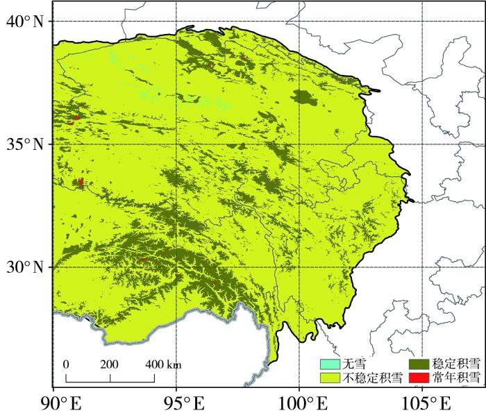 王叶堂等(2007)利用2000—2005年的MODIS卫星观测资料初步分析了青藏高原积雪覆盖的分布特征及变化趋势,指出青藏高原的积雪在四周山区较多、腹地较少,积雪覆盖面积总体上呈现出冬春季减少、夏秋季增加的变化趋势;同时研究表明气温和降水是影响高原积雪覆盖变化的基本因子。白淑英等(2014)基于较长时序(2001—2010年)遥感数据研究发现高原平均积雪覆盖面积呈波动缓慢减少,但趋势并不显著。随后,众多研究从更多方面分析了积雪在不同维度上的变化特征。如杨志刚等(2017)使用更长的时序数据在积雪覆盖变化方面有了更细致的发现:2000—2008年积雪面积有所增加,但2001—2014年则总体表现为微弱减少;除多等(2017)研究表明高原周围和中部高大山脉积雪覆盖较多,腹地盆地和谷地积雪覆盖较少,不同海拔高度上积雪覆盖率具有不同的年内变化特征;Zhang等(2017a)研究发现2003—2014年高原积雪覆盖缓慢减少,但秋季积雪覆盖在增加。最近,拉巴等(2024)利用2001—2022年原始MODIS积雪覆盖产品进一步研究指出,青藏高原东部积雪变化对高原整体积雪年际变化具有主导作用。以往相关研究加深了人们对高原积雪覆盖时空变化的认识,但由于现有研究大多基于原始的MODIS观测资料,且资料长度有限,得出的高原积雪覆盖变化趋势等结论并不一致。